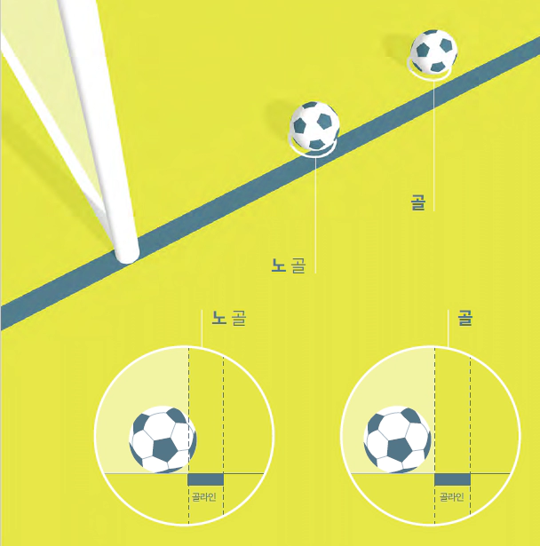 또한 완전히 넘어간 것이 아니라 공의 일부분이라도 골라인에 닿아있다면 득점으로 인정되지 않습니다. 이 부분에 대해서는 몇 번의 논란이 있었는데 2014년부터 골라인 판독기가 도입되면서 골인 여부에 대한 논란이 해소되었습니다.